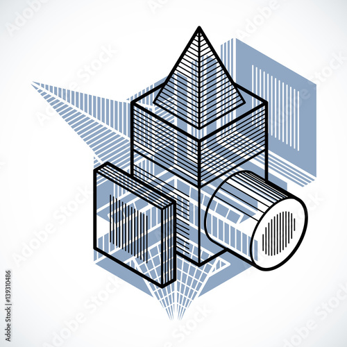 3d abstract isometric construction, vector polygonal shape.