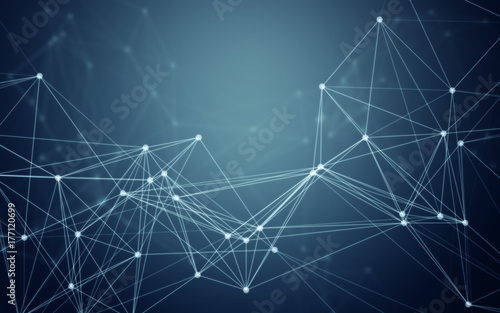 3D Abstract Polygonal Space Blue Background with White Low Poly Connecting Dots and Lines. Endless Mesh Representing Internet Connections in Cloud Computing.
