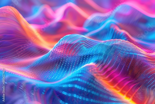 3d abstract wavy surface with glowing particles, Ai Generated