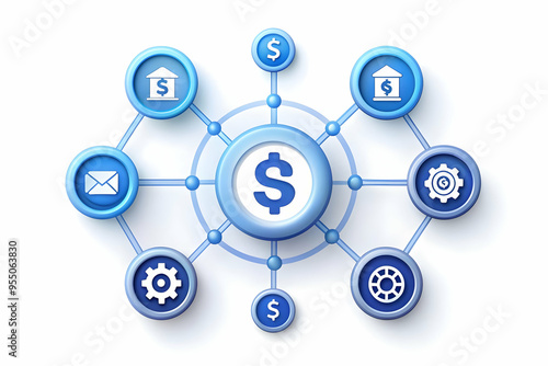 3D AI Automation and Budget Control Concept: Abstract Vector Illustration of Automation Icons Connected with Budget Control Symbol Showing AI's Role in Efficient Financial Management