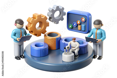 3D AI Driven Operations Review: Innovative Efficiency and Data-Driven Improvements in Operations Management Concept - Team Using AI Tools to Optimize Processes - Isolated Icon on White Background