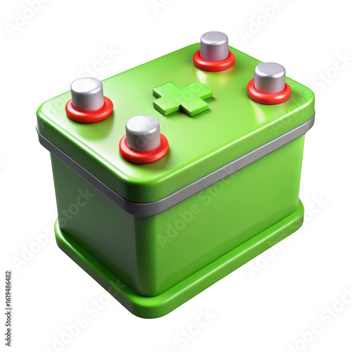3d car battery with green casing isolated on transparent background