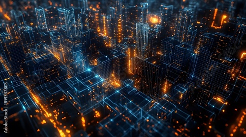 3D cityscape with glowing digital connections, representing the power of technology in urban development