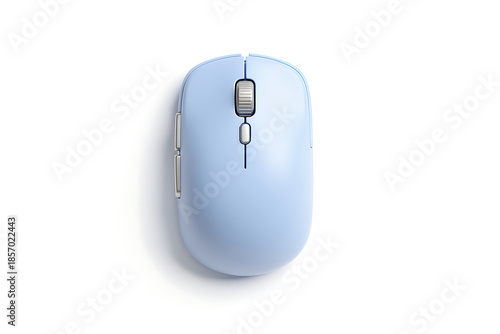 3D claymorphism blue computer mouse icon for wireless technology and digital workspace isolated on white background