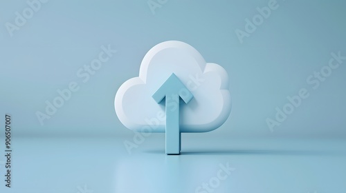 3D cloud icon with an upward arrow on blue background, symbolizing cloud computing, data upload, and internet storage solutions.