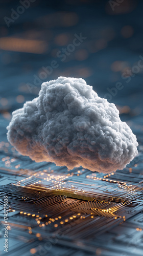 3D cloud surrounded by floating digital code on an abstract blue background, representing cloud computing, data storage, virtualization, network infrastructure, and modern technology solutions.