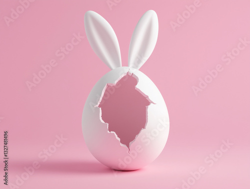 3D cracked Easter egg with bunny ears isolated on a solid color background