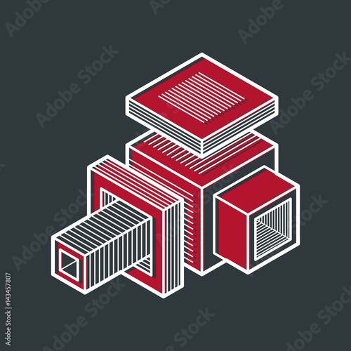 3D engineering vector, abstract shape made using cubes and geometric forms.