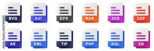 3d file format type icon set bundle illustration