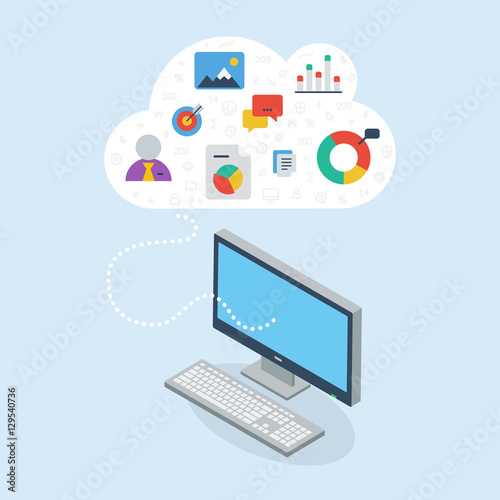 3D flat computer device sharing data on cloud.