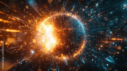 3D Futuristic Data Explosion with Light Particles and Geometric Elements. Generative AI