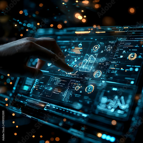 3D Illustration - Hand Interacting with Futuristic Data Interface
