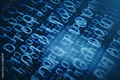 3D illustration binary code on blue background. Bytes of binary code. Concept technology. Digital binary background.