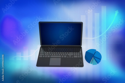 3d illustration laptop smart phone pie chart concept