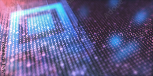 3d illustration of a concept image of digital data. Binary code and quick response code.