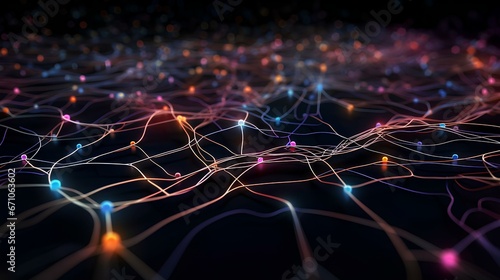 3D illustration of neural networks, Big data and cyber security, Data flows, Global databases and artificial intelligence