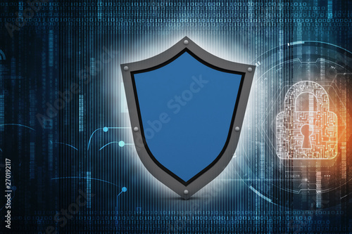 3d illustration Security concept - shield on digital code background
