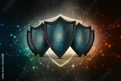 3d illustration Security concept - shield on digital code background