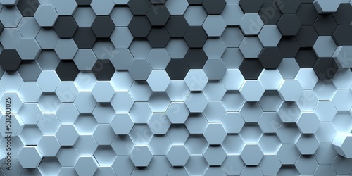 3D image of a decorative panel from multi-colored hexagons. Background and texture