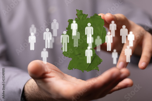 3D map of Germany. Map of Germany land border with flag. Germany map on white background. 3d rendering.
