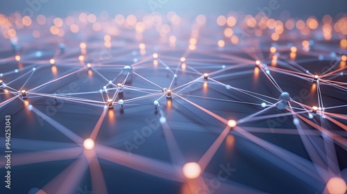 3D network nodes with connecting lines, abstract technology concept, no people, space for text