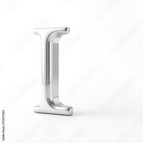 3D Polished Silver Metallic Letter I on White Studio Gradient
