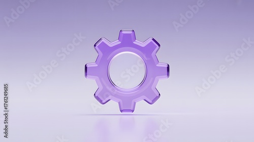3D Purple Gear Icon Representing Technology Settings, Engineering Process, and System Optimization Symbol for Software Development, Technical Management, and Digital Innovation Concept