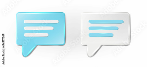 3d realistic vector icon set. Chat bubble in white and blue, message and web.
