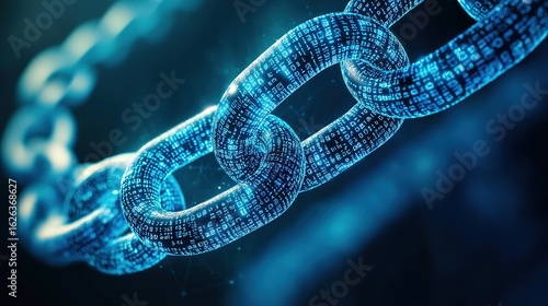 3D Render Blockchain Chain Binary Code Dark Background Blue Purple Tech Concept