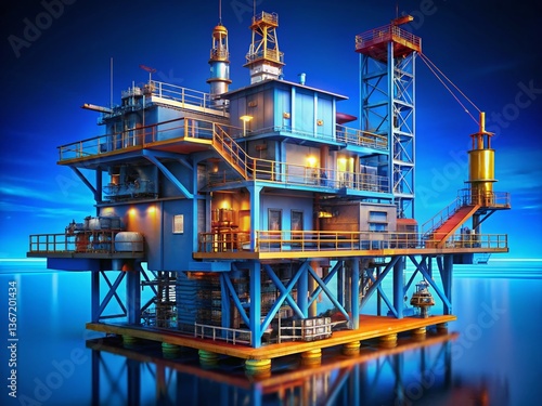3D Render: Blue Screen Oil Rig Construction Plant - Industrial Site