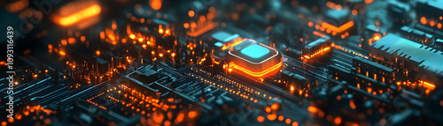 3D Render Circuit Board Technology CPU Data