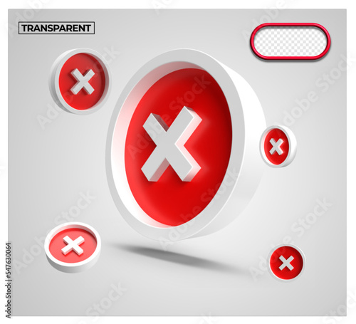 3D render coin icon transparent cross mark