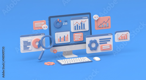 3D Render: Data Analysis Dashboard with Floating UI Elements