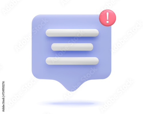 3d render icon chat speech bubble notification. Square shape message communication, app, web symbol. Vector illustration