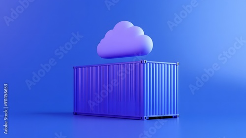 3D render of a blue shipping container with a cloud icon above it, symbolizing cloud computing and data storage concepts.