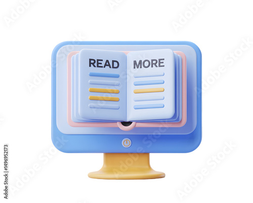 3D Render of a Computer Screen Displaying an Open Book with Read More Text