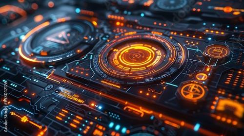 3D render of futuristic user interface elements,