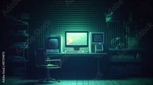 3d render of the old retro computer in the old retro office with light