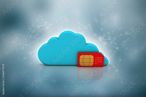 3d render sim card with cloud