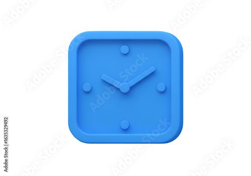 3D Rendered Blue Square Clock Icon Isolated on Transparent Background