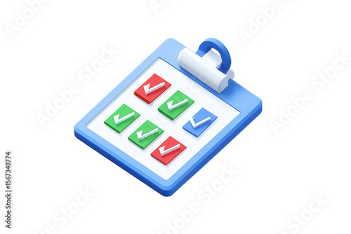 3d rendered clipboard with checkmarks representing task completion and workflow visualization