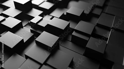 3D rendered geometric blocks creating an abstract pattern on a black background.