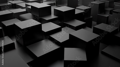 3D rendered geometric blocks creating an abstract pattern on a black background.