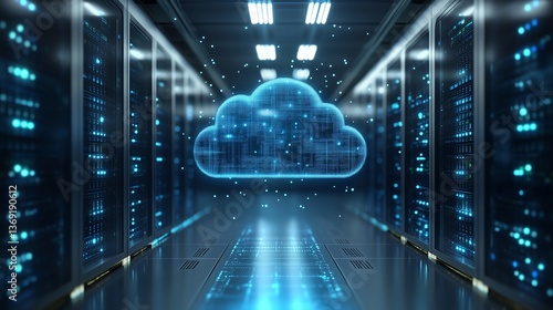 3D Rendered Minimalist Server Room for Cloud Computing, Modern Data Center Technology Concept