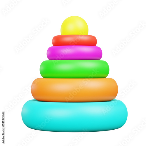 3D Rendered Stacking Ring Tower Toy with Different Colored Rings