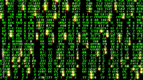 3d rendering abstract blocks of matrix code located in the virtual space. Code on a black background