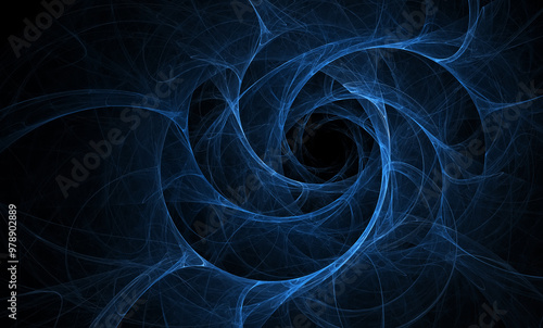 3D rendering abstract fractal, blue glowing gravitational waves abstract background