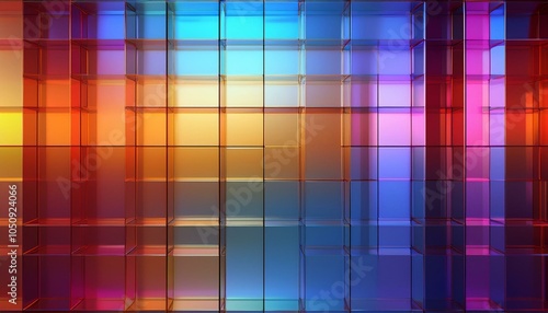 3d rendering abstract geometric background translucent glass with colorful gradient simple square shapes