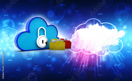 3d rendering Cloud computing concept, Cloud internet technology concept background, Cloud computing and network security technology concept