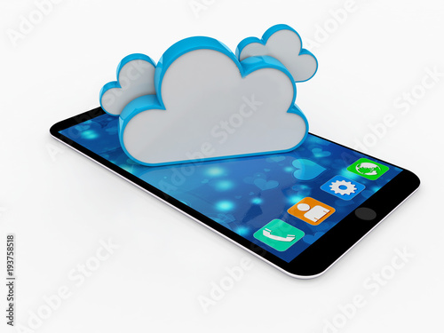 3d rendering Cloud computing concept, cloud with Smartphone isolated in white background